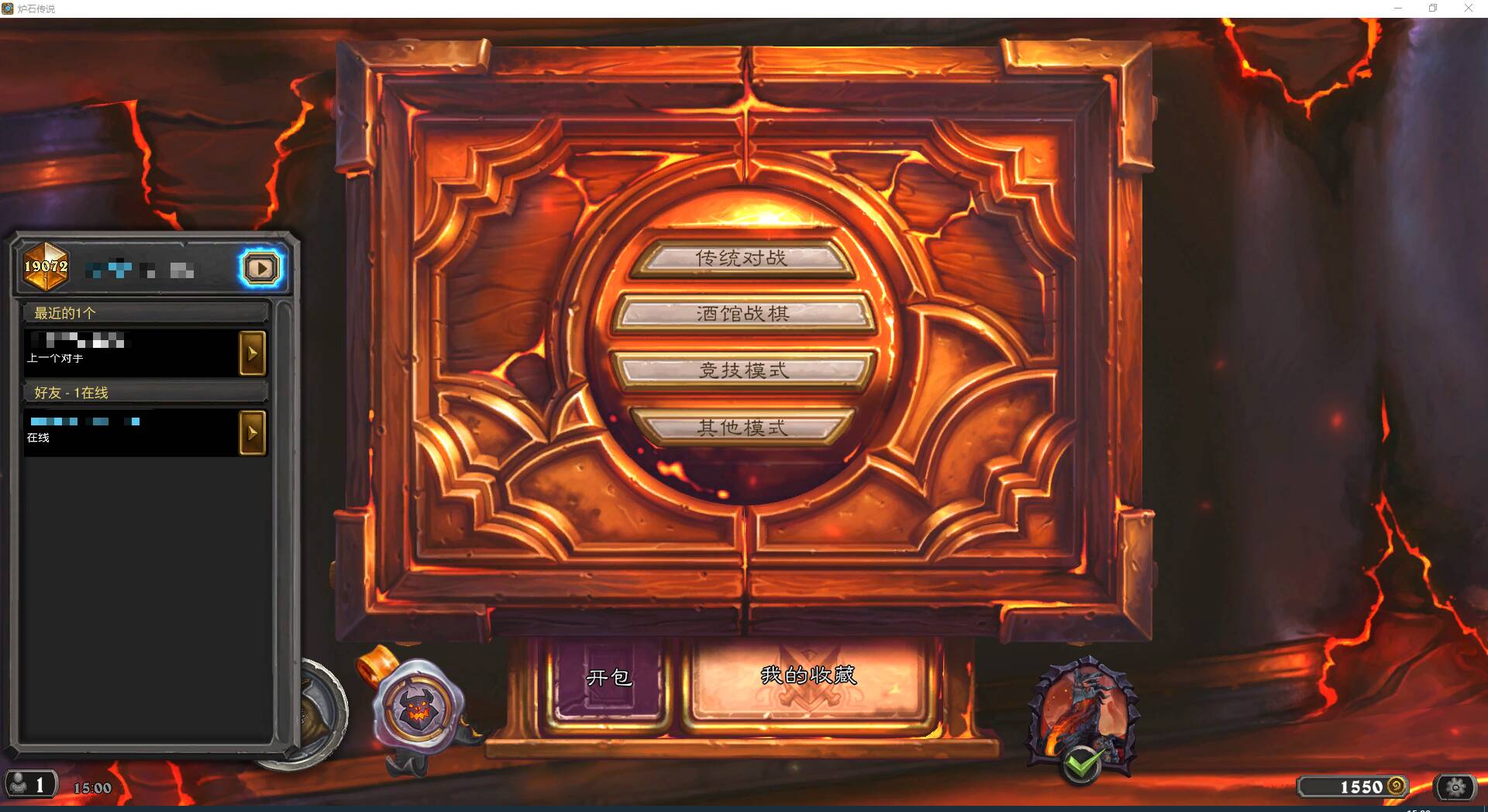 于是马上组牌开战,发现战士实在缺牌太多,想起退坑前瞎子表现不错,于是就拿它的第一套模版(也是唯一卡全的一套)开打,2星加成,打到黄金10,感觉小德才是答案,于是果断加入。