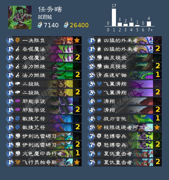 奥杜尔的陷落,时间咒符延迟抽三,一卡就能做完一阶段任务的强力效果。任务瞎羽翼渐丰,只是以刀或者大哥铺场或者吸血体系作为终端很难起到一锤定音的效果,或者说,没那味。我一通操作下来,我就想看帅气斩杀或者一地88,人家鬼灵贼都7788打脸了,奇迹贼已经一地巨人还有个30-30的大范了,为啥还要玩你任务瞎呢?