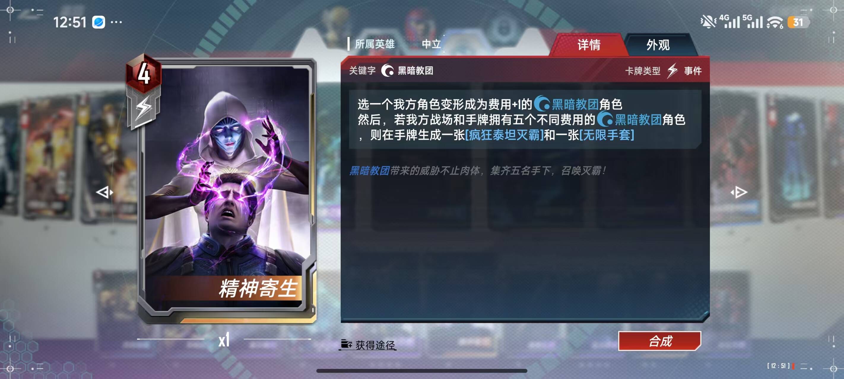 4费:环境加速泽莫拉满,拿来压一压援军,精神寄生稳定启动黑暗教团
