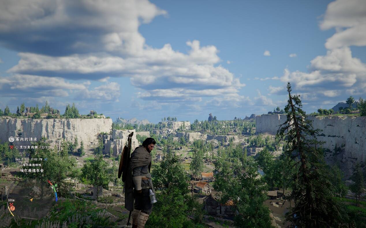 在非战斗玩法上的,本作同样加载了大量的小巧思。几乎每个(是的,每个)NPC——哪怕是无名氏“流浪佣兵”都能和玩家构建单独的友好度和支线故事。尽管素人模组的情节可能大量受限,但是这种安排最大限度的给予了玩家充分的扮演体验。而城镇声望、居民任务等系统则为玩家创造了另外一个维度上的“收集品”。不太客观地说,《红色沙漠》中的城镇有着相当程度二游主城的既视感,而玩家需要做的不仅是探索与发现,还要清理“日常”……