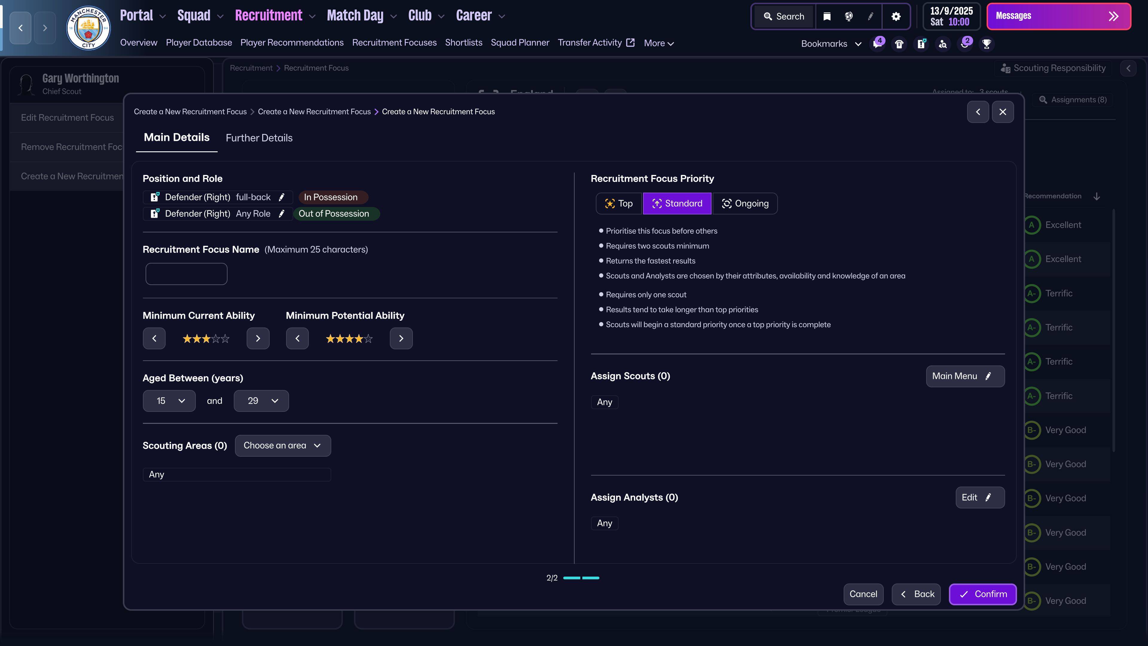 本作保留了能够高效进行招募活动的“招募焦点”功能。玩家可以设定位置、联赛、年龄等条件,让球探挑选出符合俱乐部方针的球员,拓展补强的选择范围。