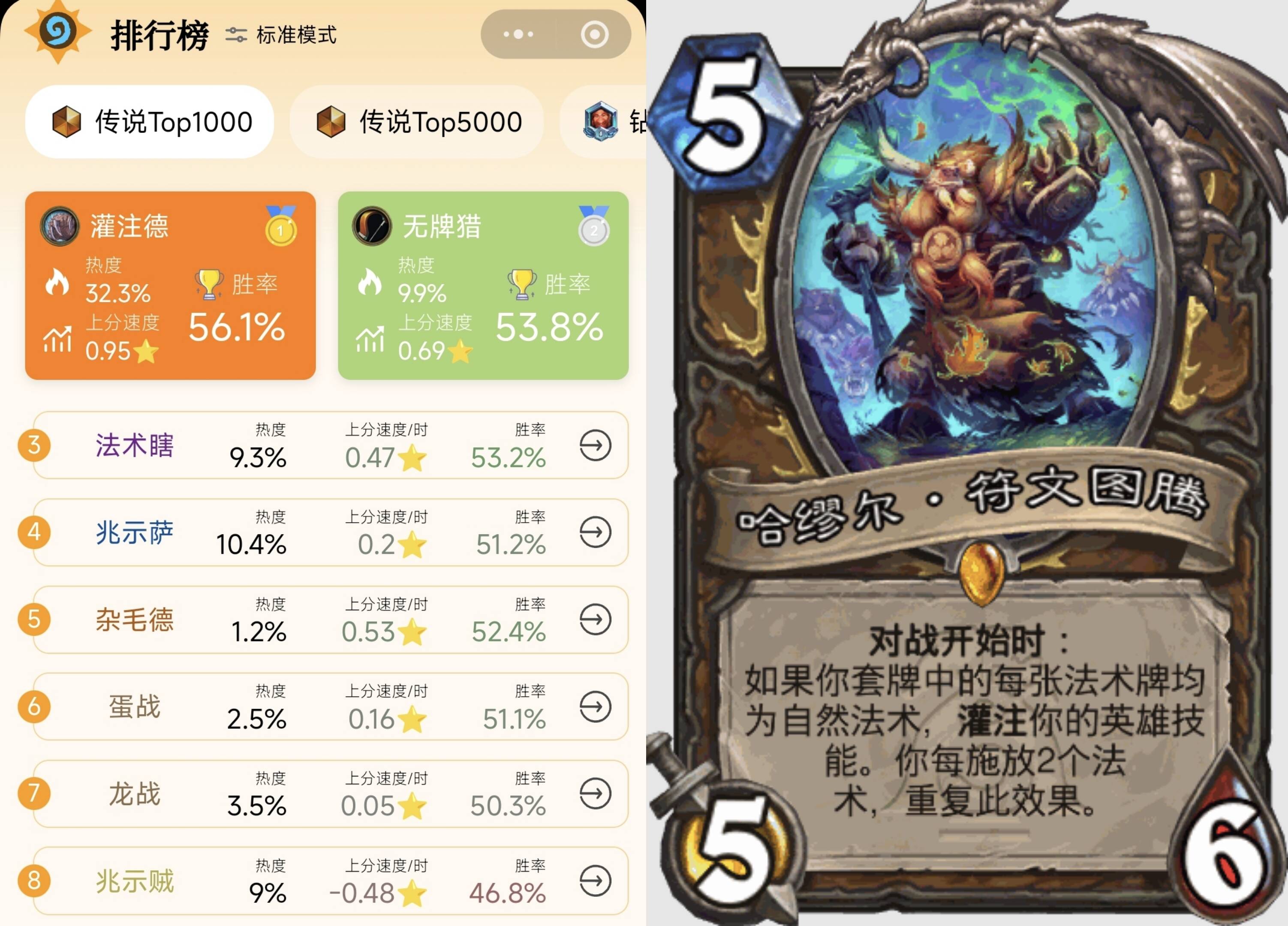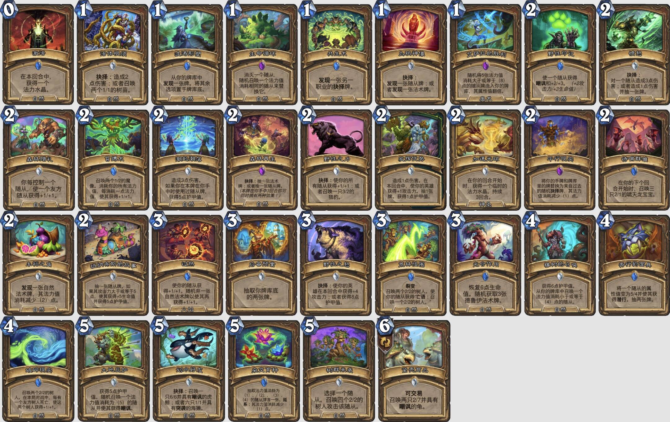 解场和直伤集中在法师这里,但不符合刻板印象的是,德鲁伊法术的费用要比法师低得多,平均每张牌德鲁伊要低0.68费。