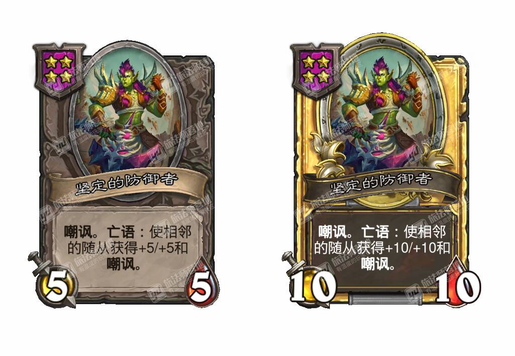 - [4星5/5] 嘲讽。亡语:使相邻的随从获得+5/+5和嘲讽。