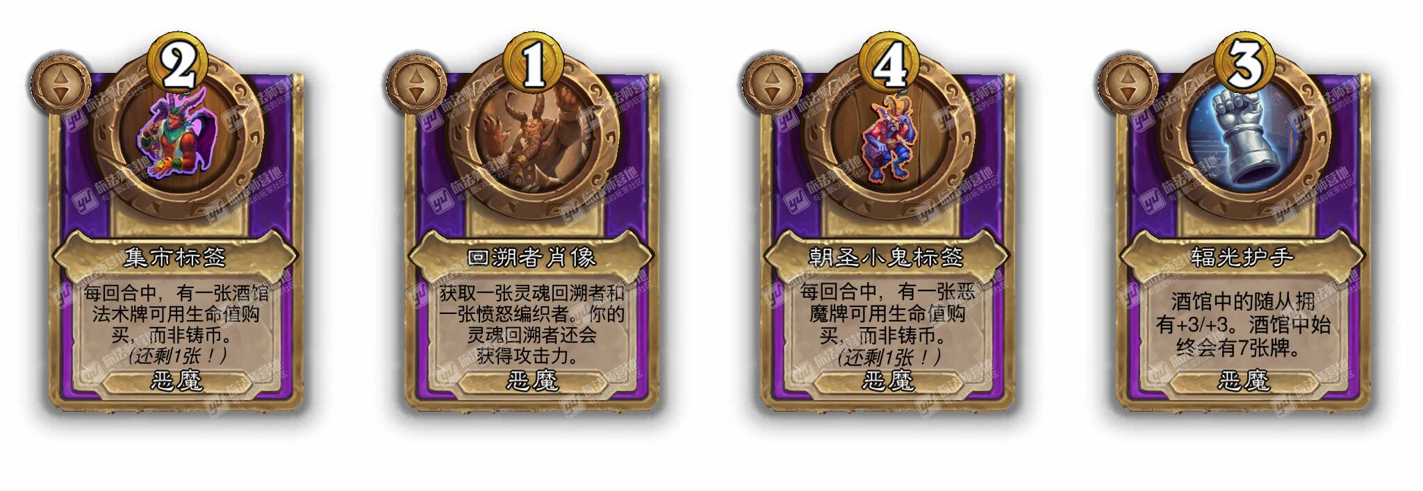 - [恶魔4费小型] 获取一张林地亵渎者。酒馆中的恶魔饲料拥有+2/+2。