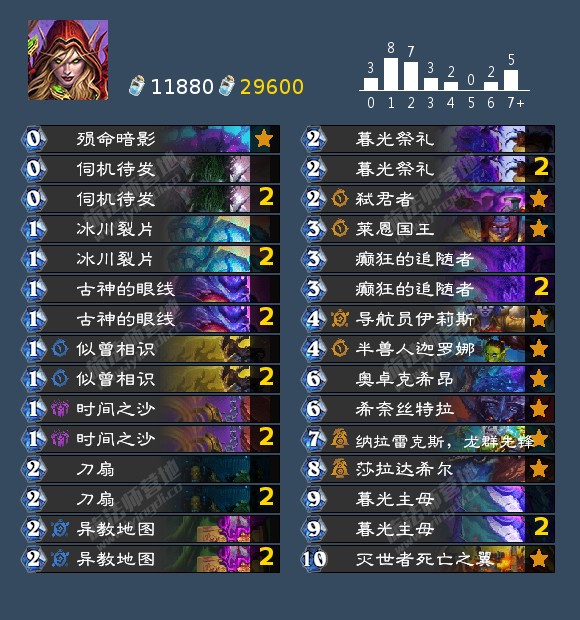 如果卡组有乐队经理精英牛头人酋长 或 奇利亚斯豪华版3000型 ,则详细卡图底下会显示相应的卡。