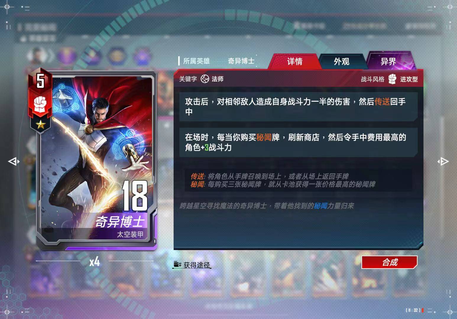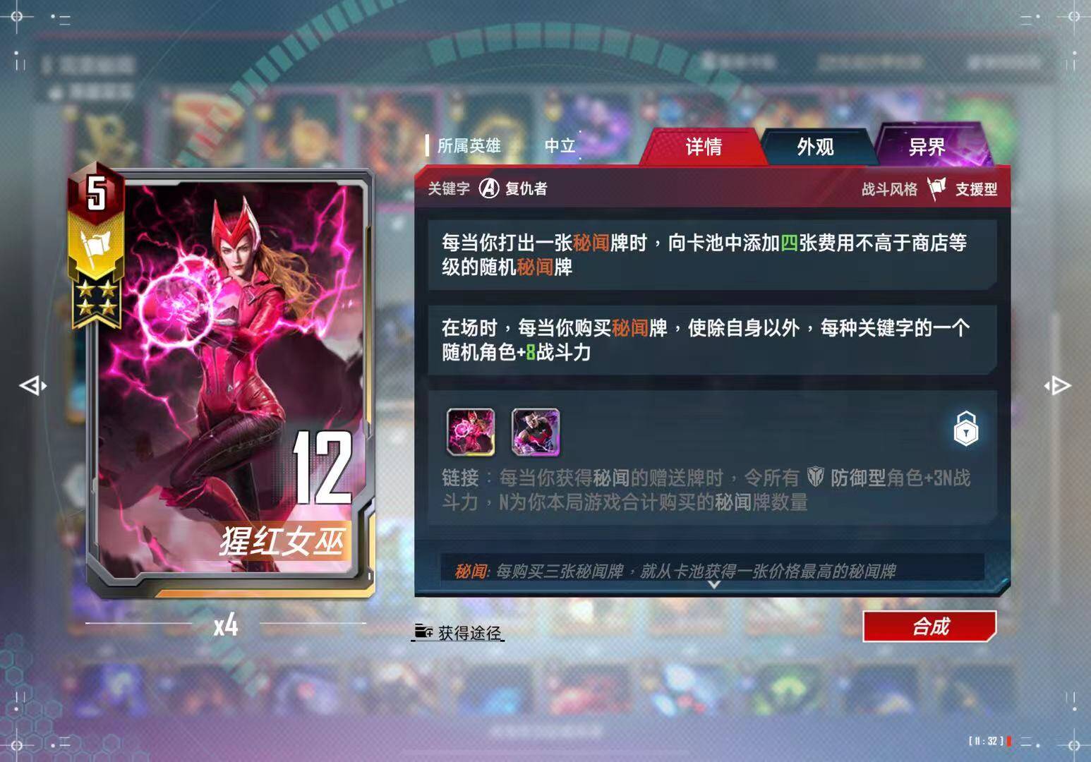 6~8回合:上5本开扭曲,寻找关键组件,在血量不好的情况下,组件没来之前优先吃血包锁血,优先找到二星局长给女巫翻星。克里亚、托尼、并肩等经济操作我就不过多赘述了。找到太空博士+二星甚至更高星级女巫的时候就可以开始刷秘闻了,拿到召唤仪式就经济很富裕,滤牌很舒服,拿到血包就美美加血。夜巡四星托尼。