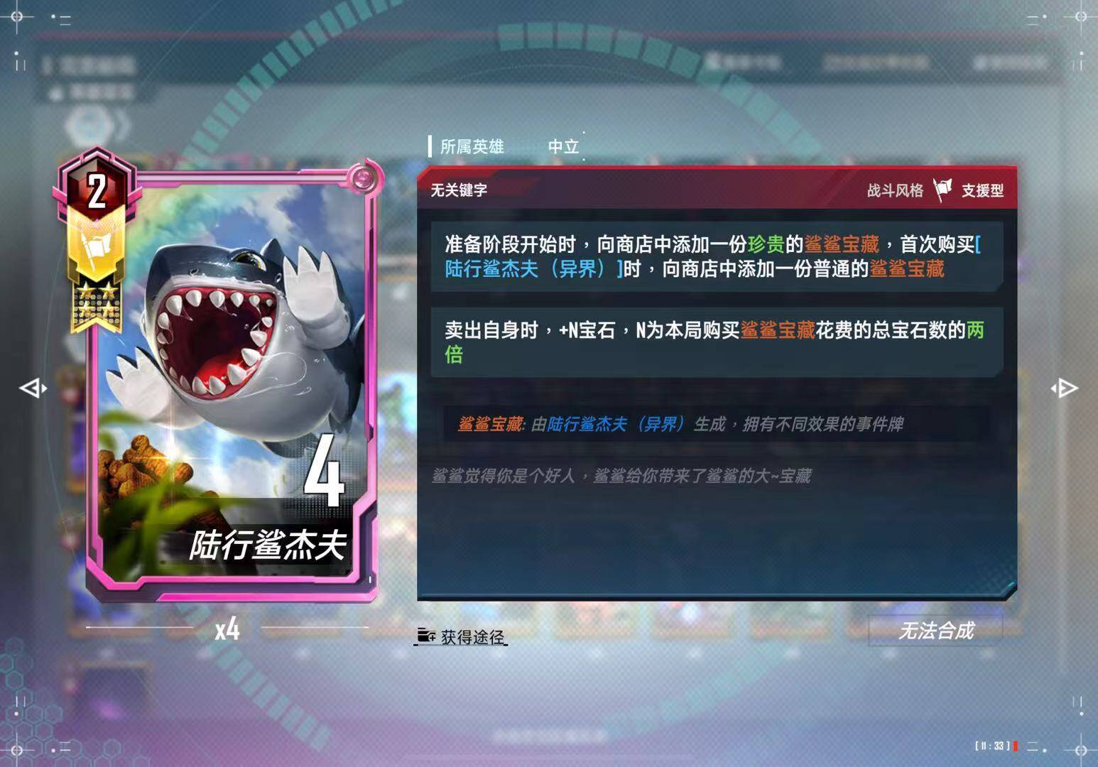 2费:因为组件有很多高费卡,所以选择1扭曲,上本回合使用。鲨鱼极好的经济组件,与血魔契合度高。