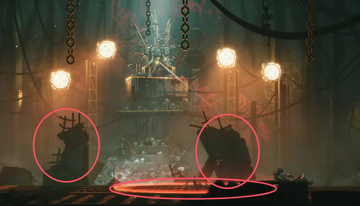 BOSS 第一管血耗尽后进入二阶段,此时除射击技能外,其余技能均会连续释放两次,斩击、冲刺、招架都是这样,注意躲避即可。