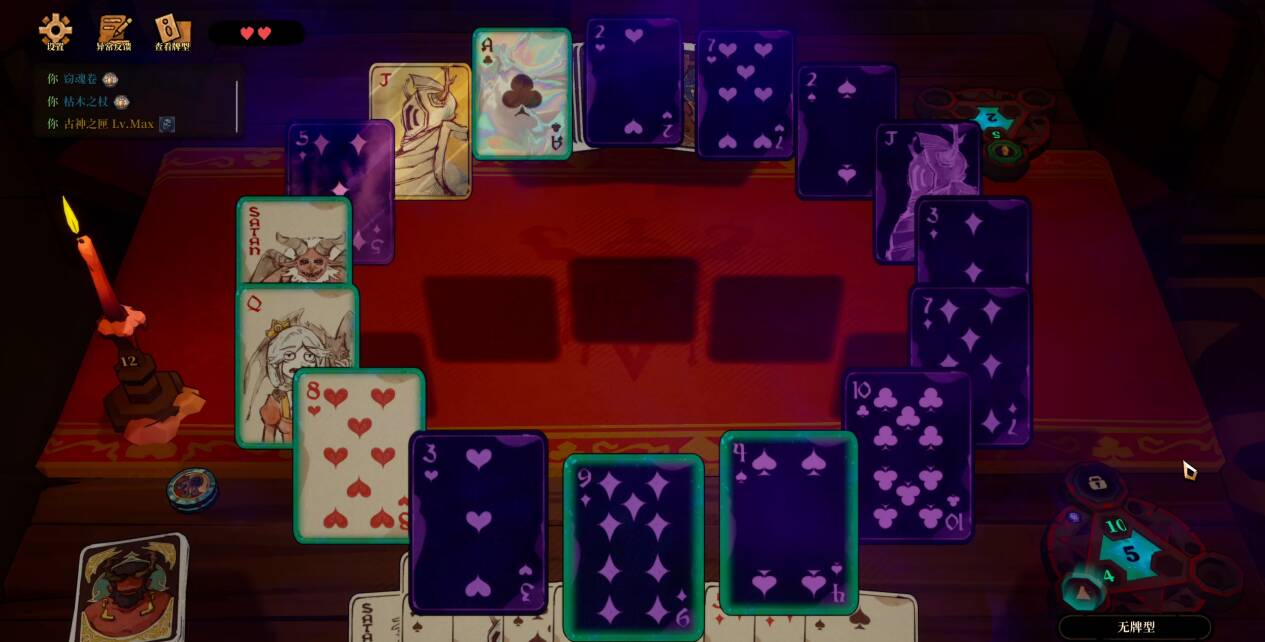 《恶魔牌》的核心玩法建立在斗地主的基础之上——比对手更快打光手牌。但与《小丑牌》中的“赌注”机制不同,《恶魔牌》更强调与对手的直接博弈,并通过两大独特系统实现了“规则随便改”的游戏体验: