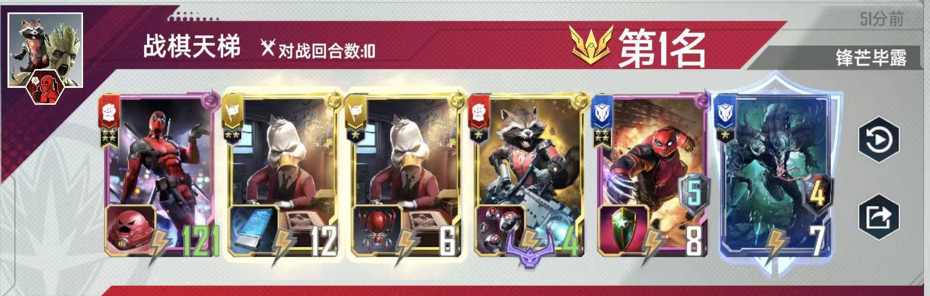 5费 头盔带2张防止决赛对面也有星爵就头尾2张死侍戴头盔,赚钱的发射器扭到低费拿下放手里