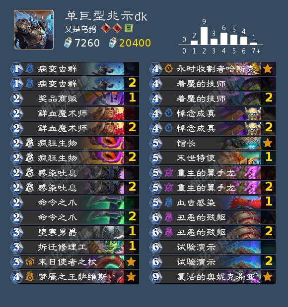 一张残躯可以换第二张中立兆示。鲜血魔术师有点厉害,可以发现兆示和巨型。祝各位兆示dk把把人体蜈蚣。