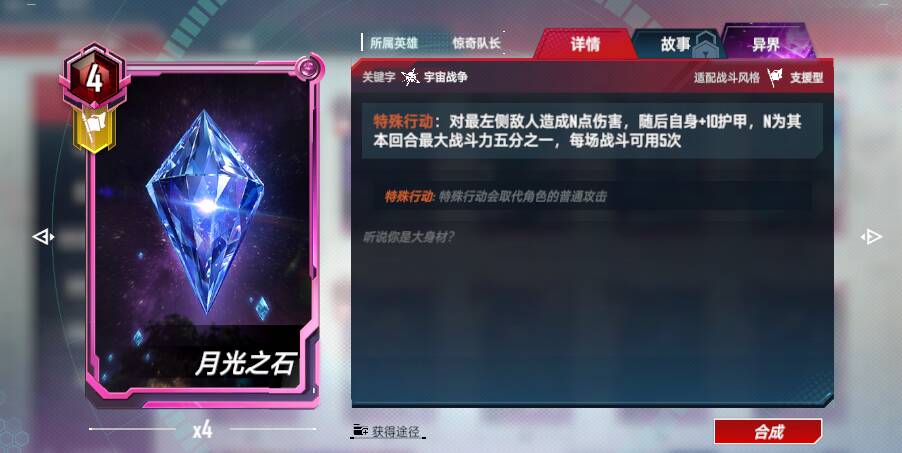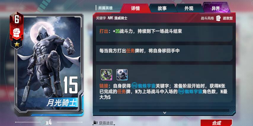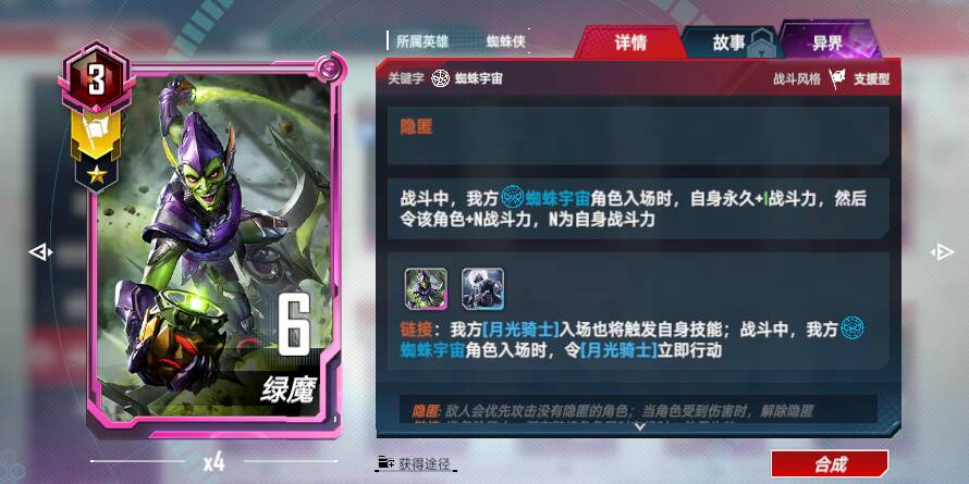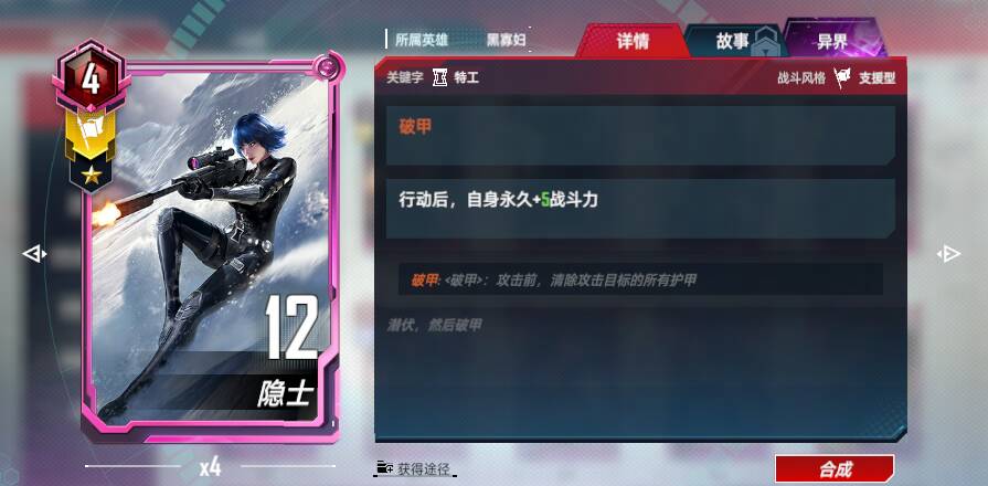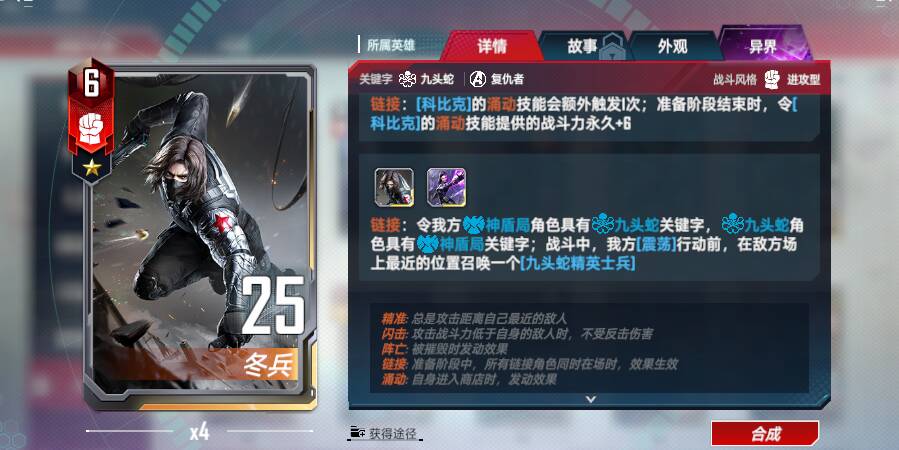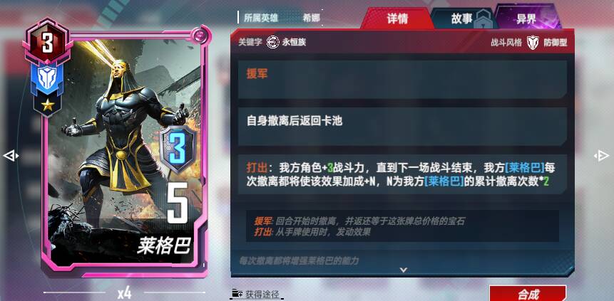 <链接>:每当具有数字4的角色行动后,我方所有具有数字4的角色+4战斗力和护甲,每次触发后,该加成永久+4(<唯一效果>)