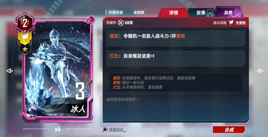 <磁场战士>:在场时,佩戴<磁场装备>的我方角色行动后,我方所有<磁场战士>战斗力永久+5/10/20;准备阶段结束时,我方所有<磁场战士>+N战斗力,N为自身<磁场装备>等级*3