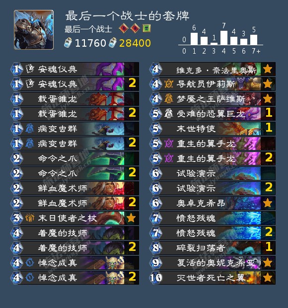 3、奈法:特地为了奈法带了龙体系,本来奥尼克希亚和667兆示都是龙,再加上雏龙(可根据环境换成222密探龙)补充了3费前的节奏。奈法有时候真的有奇效,而且还能配合容易卡手的4费复活亡灵法术,今天就有一把捏了8费5-10圣盾扰魔吸血嘲讽炎术师龙,靠着复活,打龙战极限翻盘了。而且还有剧毒全场打一的优质返场牌等等可能,需要一定的思考量来捏。