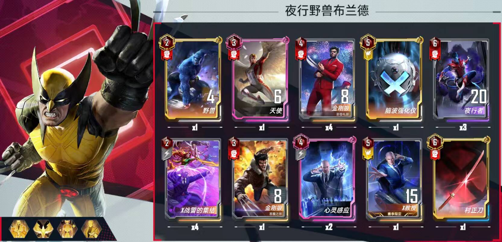 有什么拿什么,保持战力。优先拿野兽天使金刚狼