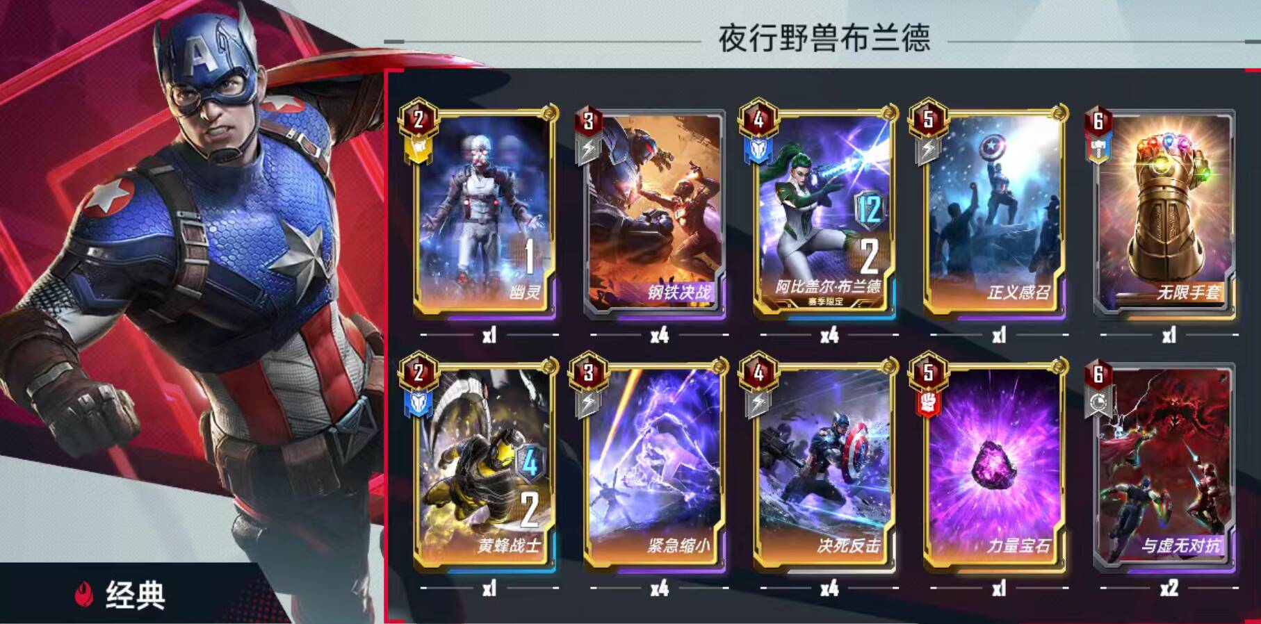 都是老链接,野兽布兰德刚出我就开了,身材刷不起来,放哪里都不合适,就没玩了。但是新赛季给野兽布兰德做了加强,还有布兰德的赛季首发,每回合会让牌回手(希望能用就保留这个机制)身材涨起来挺快的,5、6回合就能刷1、200的身材,给对面减攻了,加上2个夜行的先制偷牌和事件,中期非常舒服,尤其打中期没滤干牌库的莱格巴。如果不碰到莱格巴有一定的吃鸡能力。