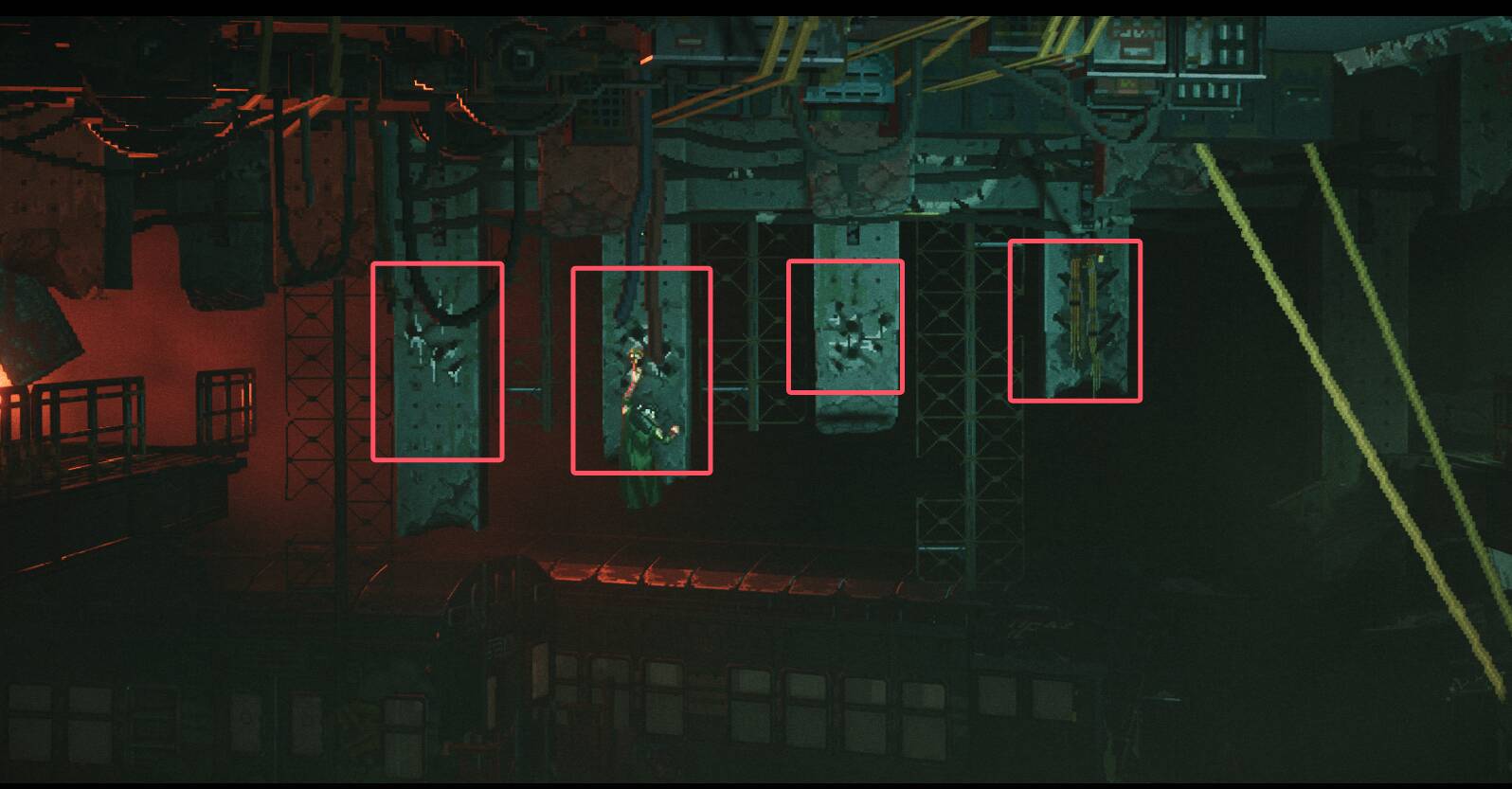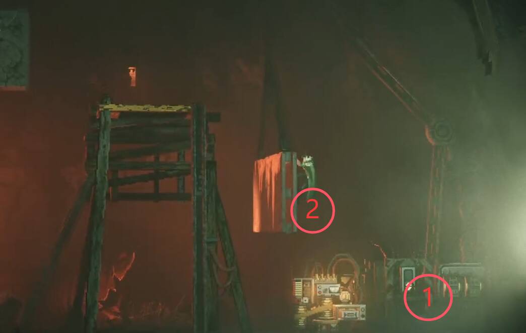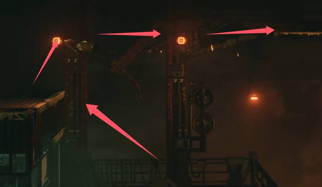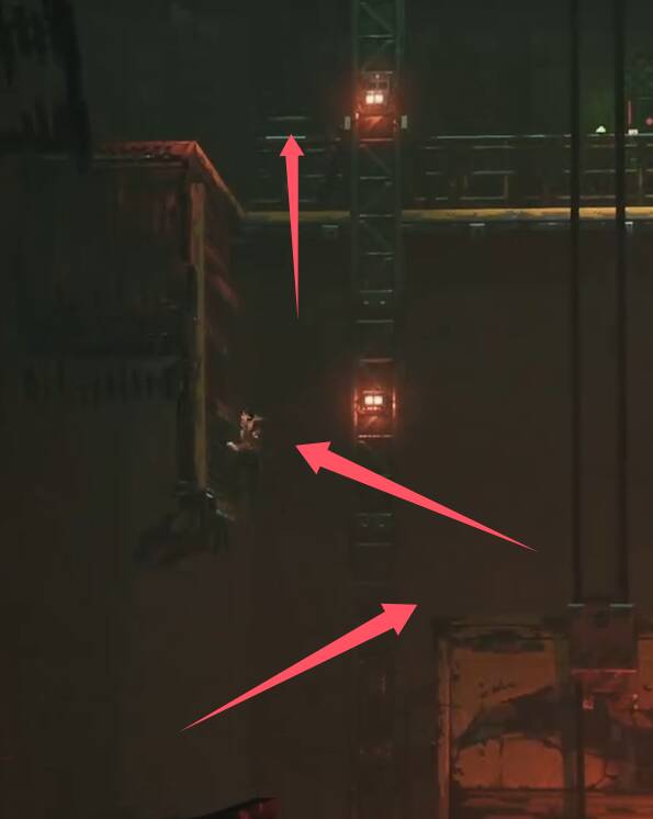 遇到机器,按下装置,放下设备,爬上集装箱。之后继续往上,不断的按下按钮,放下箱子,如果跳不上去,记得往前走到前景,再往上跳就可以了。