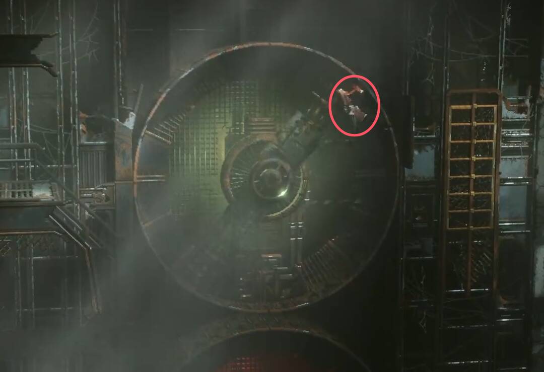到达目的地之后,和奴隶一起拉出大型箱子,爬上后落到地面,往右走。遇到一面墙上间歇喷蒸汽,利用间歇从右往左攀爬,然后走最左边的楼梯上到顶部,往右走。