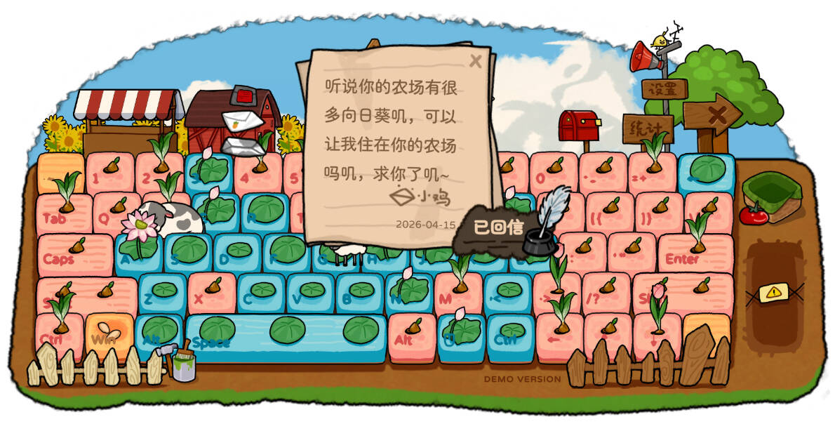 作为一款放置挂机类游戏,《指尖农场》的基础玩法非常轻松简单。玩家日常操作电脑的键盘输入和鼠标点击等常规行为,自动转化为游戏中农场作物的生长进程。