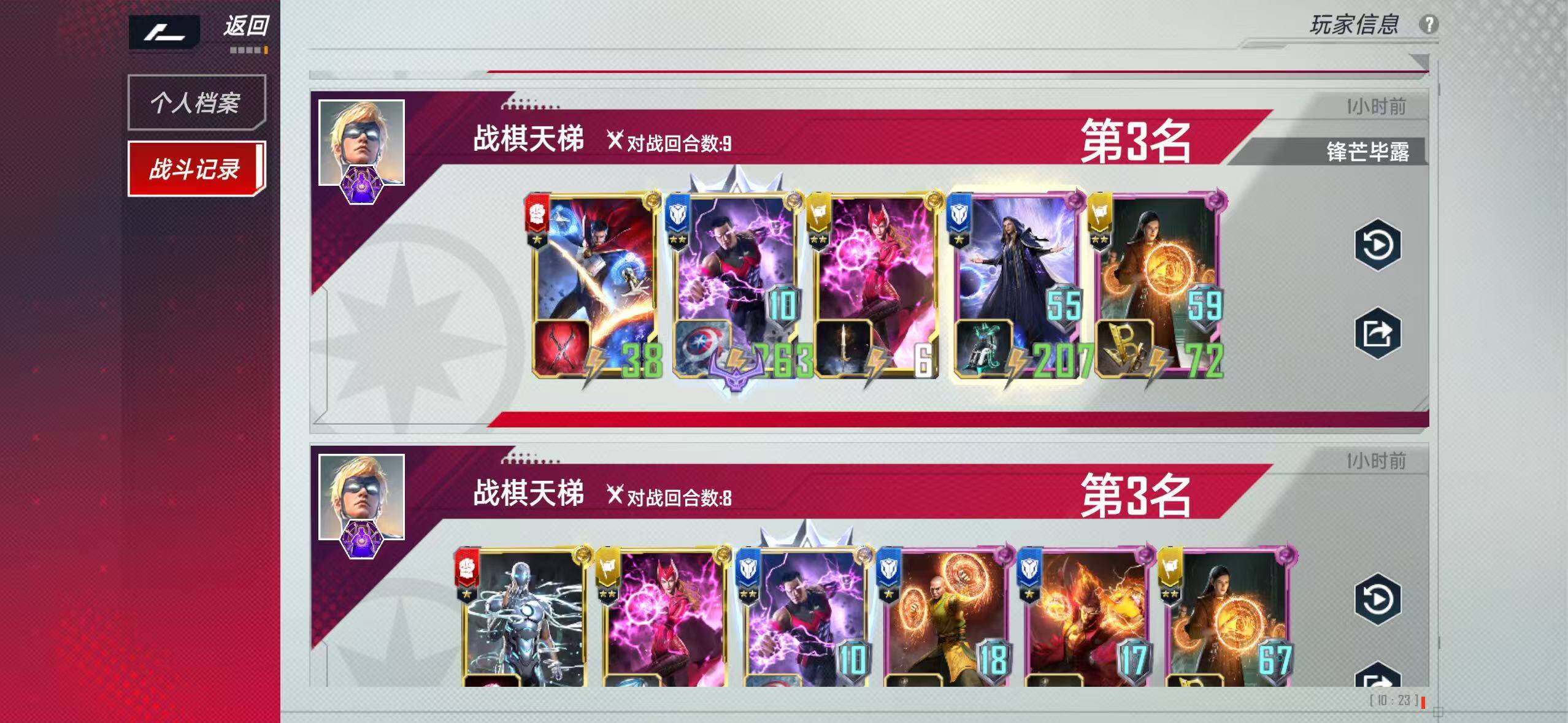 3、身材也差不多了,8-9回合上6找界法师,找个盾给奇迹侠,剩下就是不断用仪式白嫖免费秘闻,女巫加秘闻,奇迹侠链接给蓝卡加战力,现在召唤削了,但是也能白嫖5-6张的秘闻。我之前带了界奥数图,感觉不如秘闻回血。